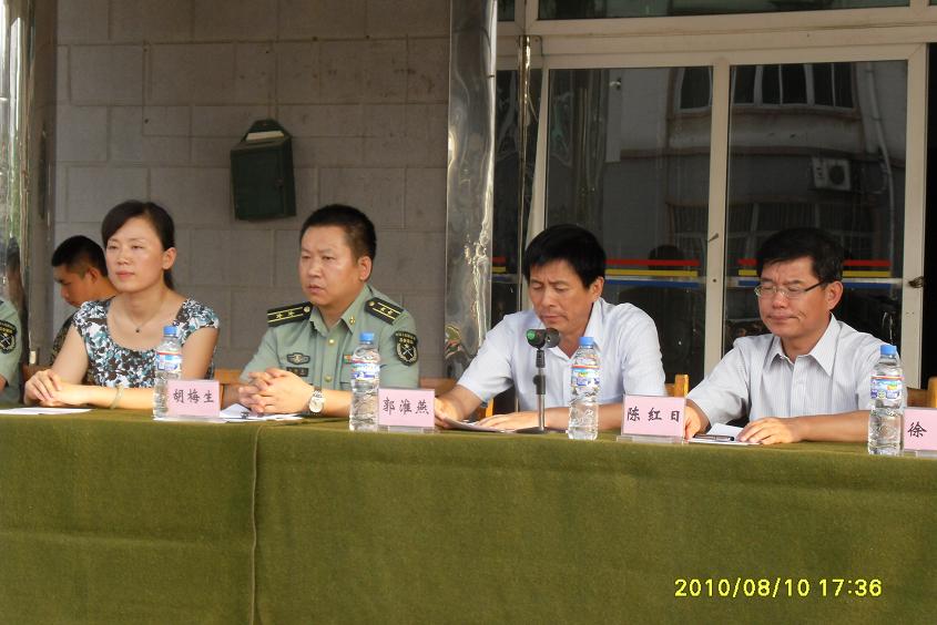 淮南四中于2010年8月10日在合肥炮兵學(xué)院拉開了2010級新生軍訓(xùn)的序幕。在學(xué)校保衛(wèi)科、政教處、團(tuán)委精心組織下,1111名學(xué)生精神抖擻安全來到合肥。在中午抵達(dá)目的地后,吃完午飯下午進(jìn)行了軍訓(xùn)動員大會,校黨委書記郭懷燕同志,陳紅日校長,保衛(wèi)科徐明科長,政教處徐坤偉主任,炮院軍訓(xùn)負(fù)責(zé)同志參加了動員大會,各位領(lǐng)導(dǎo)對同學(xué)們提出要求和希望。動員會上學(xué)生代表熱情洋溢的向全體學(xué)員發(fā)出倡議,要發(fā)揮軍人不怕苦,不怕累的精神,以最嚴(yán)格的要求完成各項(xiàng)軍訓(xùn)任務(wù),以實(shí)際行動實(shí)現(xiàn)四中人能吃苦,能戰(zhàn)斗,不畏困難,積極進(jìn)取的面貌。教官代表也做了發(fā)言,對同學(xué)們提出要求。動員大會結(jié)束后,各項(xiàng)訓(xùn)練項(xiàng)目馬上開始。訓(xùn)練場上,教官嚴(yán)格要求,一絲不茍,教好每一個動作;同學(xué)們認(rèn)真遵守教官的要求,完成教官的指令。雖然軍訓(xùn)剛剛開始,但是同學(xué)們個個都表現(xiàn)出良好的精神狀態(tài),相信未來的幾天會有更大的收獲。