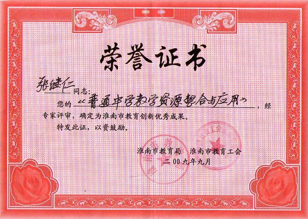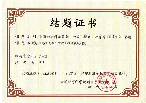 中國教育技術(shù)協(xié)會授予的優(yōu)秀子課題榮譽(yù)證書