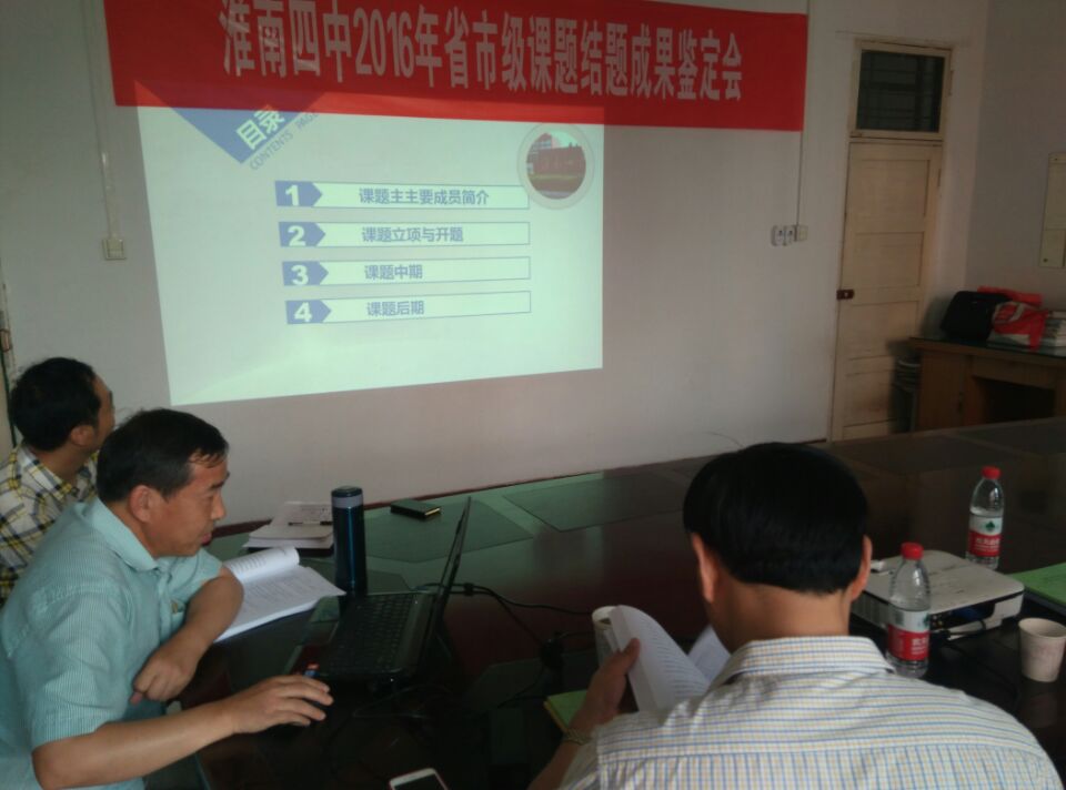 成果鑒定會(huì)共有以下項(xiàng)議程。首先,會(huì)議主持人校教研室主任張慶炎代表學(xué)校向?qū)<医M匯報(bào)了課題結(jié)題前期準(zhǔn)備工作,并對市教研室一直以來對我校教科研工作的支持表示衷心的感謝;市教研室褚軍副主任介紹了與會(huì)專家,并對我校近年來教科研工作給予充分肯定,尤其在課題研究中成績突出,成果豐碩。其次, 7 項(xiàng)課題負(fù)責(zé)人分組了匯報(bào)課題研究過程及成果,課題組相關(guān)成員作補(bǔ)充發(fā)言。專家組通過聽匯報(bào)、看材料、答辯等方式了解課題研究情況。最后,專家組分學(xué)科進(jìn)行點(diǎn)評與反饋。專家組認(rèn)為,近年來淮南四中不斷加大教科研投入,堅(jiān)持走內(nèi)涵發(fā)展之路,課題研究數(shù)量與質(zhì)量不斷提升;科研課題選題針對性強(qiáng),立足解決學(xué)校的實(shí)際問題,研究過程規(guī)范扎實(shí),成果豐實(shí)。同時(shí)專家組還希望,課題今后豐富研究內(nèi)涵,擴(kuò)大研究視野,把課題研究推向深入,以課題研究為載體促進(jìn)教師專業(yè)和教學(xué)質(zhì)量再上新臺(tái)階。會(huì)后,專家組和課題組成員合影留念。
