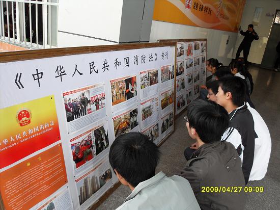 本次活動分成兩大塊,一是《中華人民共和國消防法》專刊,一是《道路交通法及交通安全教育》??2捎谜拱娴牡男问綄刹糠傻膬热葸M行展出,圖文并茂,形式新穎,引人入勝。在展出的過程中獲得了眾多學生的關注,起到了良好的教育作用。對于保障學生人身安全,提高應對突發(fā)事件的能力,起到積極作用。