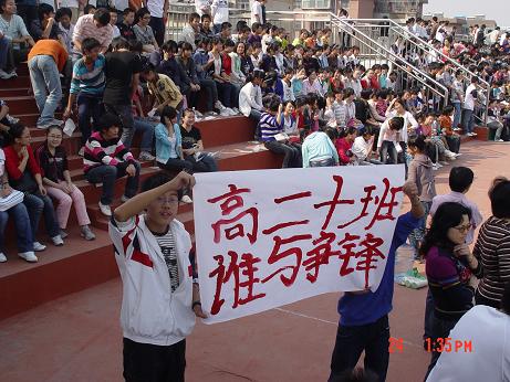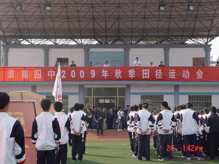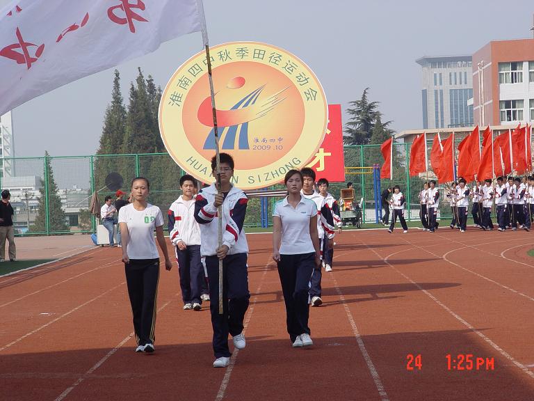 秋高氣爽,陽光明媚,淮南四中2009年秋季田徑運(yùn)動會于十月二十三日在本校運(yùn)動場隆重召開了,參加這次運(yùn)動會的有全校高一、高二年級四十個班級,近千名運(yùn)動員參加了100米、200米、800米、1500米、4 100米接力徑賽項目和鉛球、跳高、跳遠(yuǎn),擲實(shí)心球等田賽項目。整個比賽歷時一天半時間,比賽激烈緊張,有條不紊,賽出了成績,賽出了風(fēng)格,順利、安全、圓滿地完成了本次運(yùn)動會的各項比賽項目。