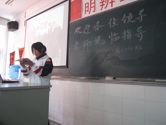2010年3月19日下午,高二12班在本班教室舉行了一場以“目標(biāo)、態(tài)度、信心”為主題的主題班會(huì)。陳紅日副校長、政教處徐坤偉主任及部分班主任與會(huì),班會(huì)由班主任倪汀江老師主持。