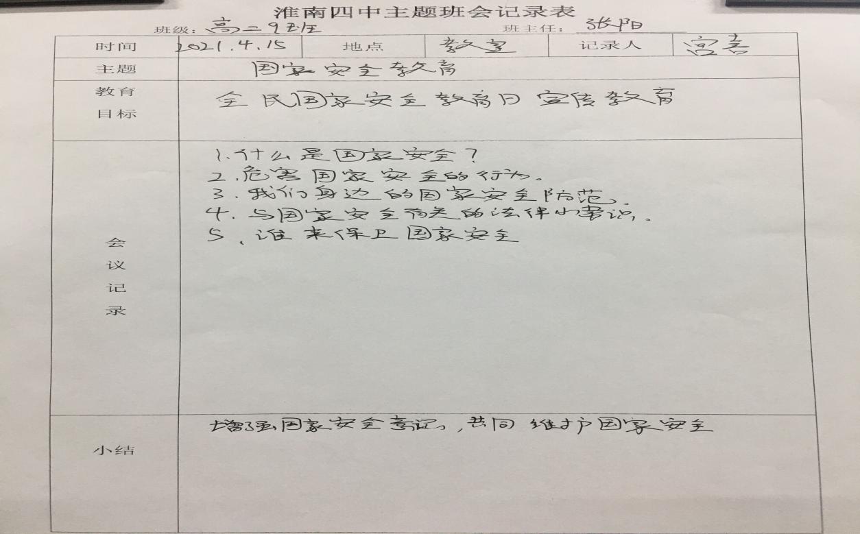 淮南四中積極開展“4.15”全民國家安全教育日宣傳教育活動