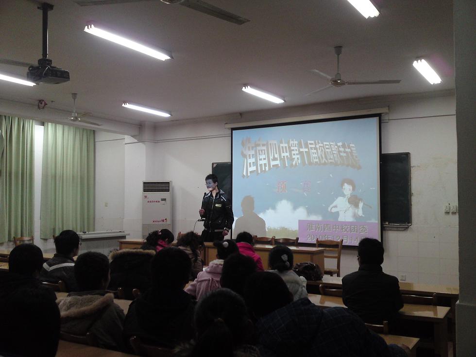 在校園文化藝術(shù)節(jié)來臨之際,為豐富同學(xué)們的課余文化生活,加強學(xué)生間的交流,活躍學(xué)校氣氛,促進(jìn)團(tuán)結(jié),陶冶情操,展現(xiàn)中學(xué)生積極向上、踴躍展示自我的風(fēng)采,共建和諧向上的校園氣氛。校團(tuán)委決定在全校同學(xué)中廣泛深入地開展主題為“音樂?夢想”校園歌手大賽。12月14日下午三四節(jié)課在7樓多媒體教室舉辦預(yù)賽。