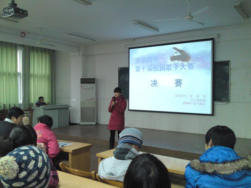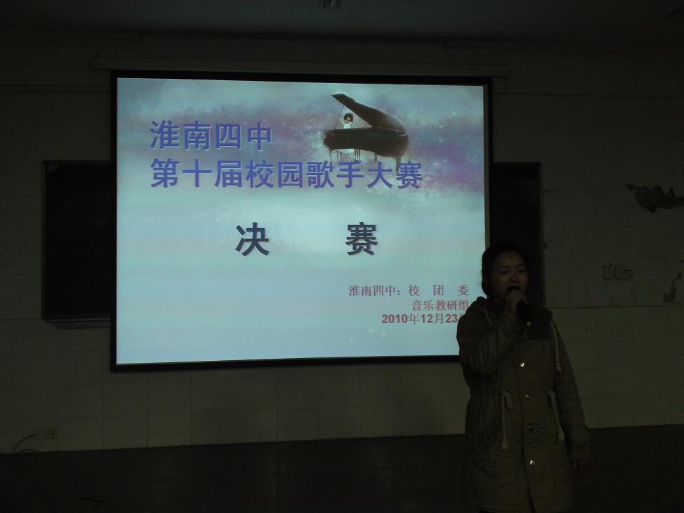 12月24日下午三四節(jié)課,校團委組織同學(xué)在校7樓多媒體教室舉行第十屆校園歌手決賽,在校音樂組戚老師等協(xié)助下,比賽順利,圓滿結(jié)束。共評選出校園“十佳歌手”10名,“優(yōu)秀歌手”12名。