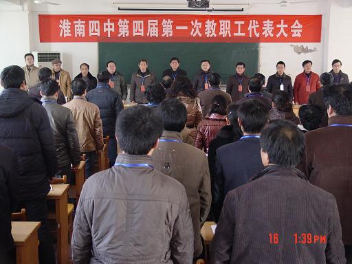 金虎辭舊歲,玉兔迎新春。在2011年新春佳節(jié)即將來臨之際,元月15日下午,淮南四中四屆一次教職工代表大會在七樓會議室隆重召開。全校69名教職工代表出席了大會,大會在《國際歌》中拉開序幕。