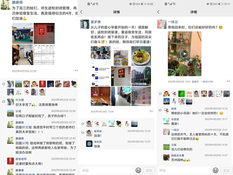 高三年級(jí)級(jí)部克服困難,及時(shí)調(diào)配好任課教師。有的教師還在封控區(qū),為了不影響高三教學(xué),同學(xué)科的老師就想辦法互相替課,不耽誤整體進(jìn)度。