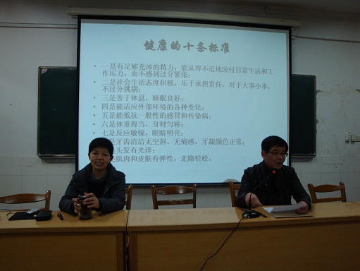 張主任首先播放了視頻《一閃而過》、《跳》讓全場的老師心情放松,激發(fā)了大家對本次講座的濃厚興趣。接著,她分析了目前學(xué)生的心理健康現(xiàn)狀和存在問題學(xué)生心理常見問題,介紹了造成班主任壓力過大的諸多因素,疏導(dǎo)大家要合理減壓。對班主任老師關(guān)心的一些突出問題進行了方法指導(dǎo)。張主任深入淺出的講解贏得了班主任和青年教師的肯定,大家認真聽講,受益匪淺