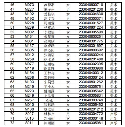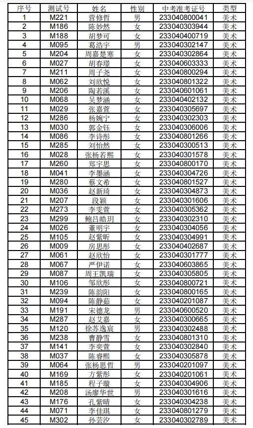 依據(jù)《淮南市教育體育局關(guān)于做好2023年普通中小學(xué)招生入學(xué)工作的通知》中“各校按照專業(yè)測試成績從高分到低分整理,按特長生自主招生計(jì)劃數(shù)1.5倍比例報(bào)送考生測試成績”及“專項(xiàng)測試成績不得低于專項(xiàng)測試總分值的60%”的要求,現(xiàn)對參加入圍名單(美術(shù)最后一名出現(xiàn)名次并列)予以公示,公示時(shí)間為2023年6月25日至6月30日。