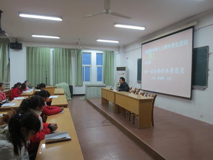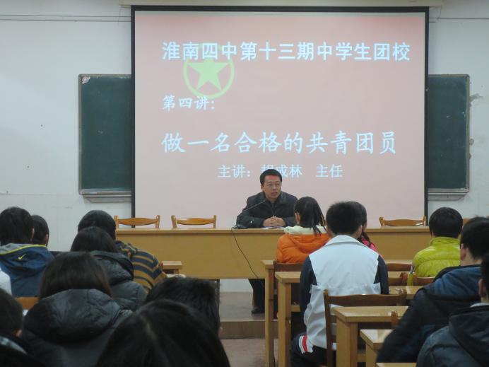 12月14日下午, 淮南四中第13期團校進行第四講,學校教務處胡成林副主任以《做一名合格的共青團員》為題給學員們上了精彩而生動的一課,本次團課由校團委書記李永興主持。