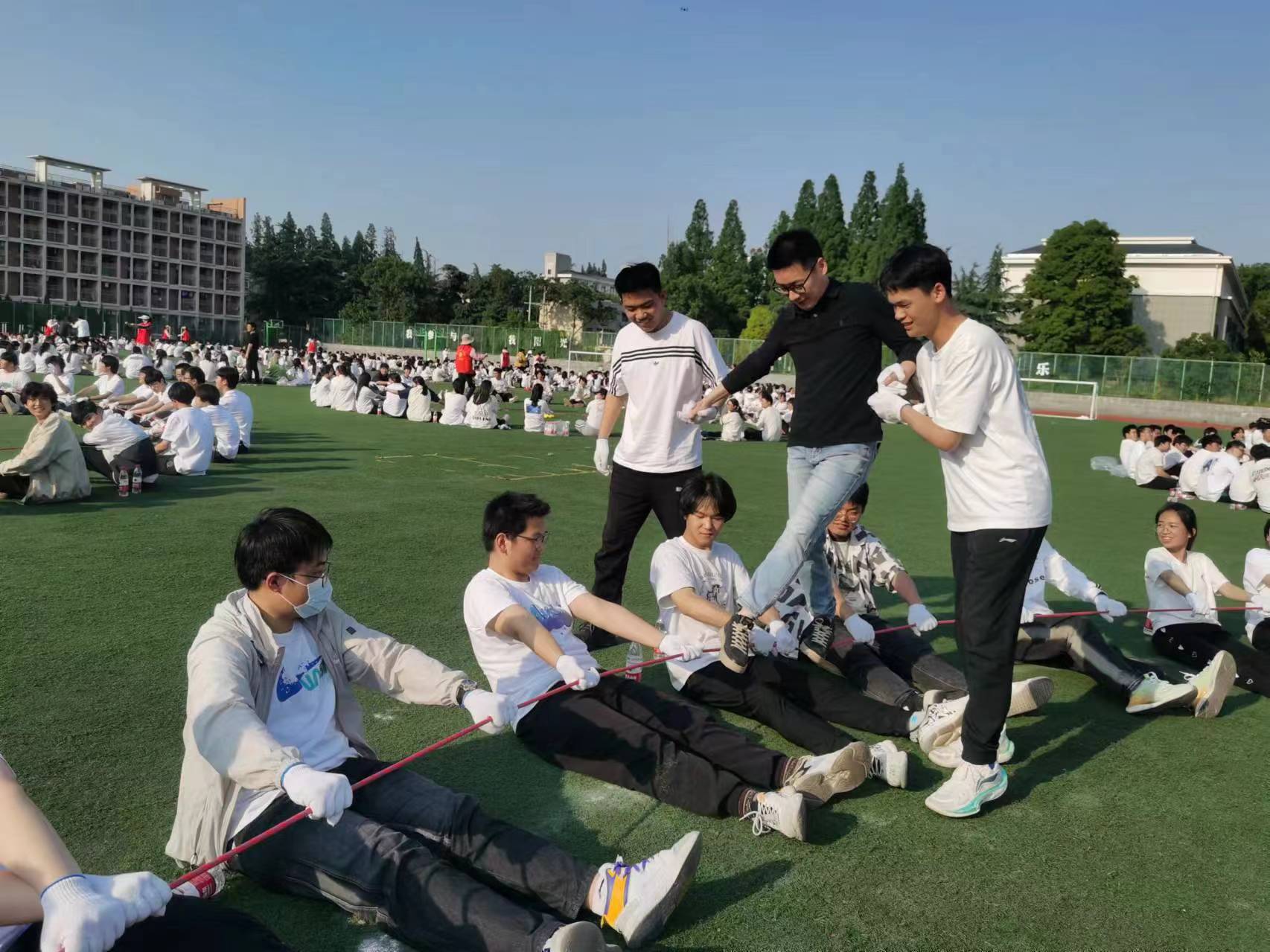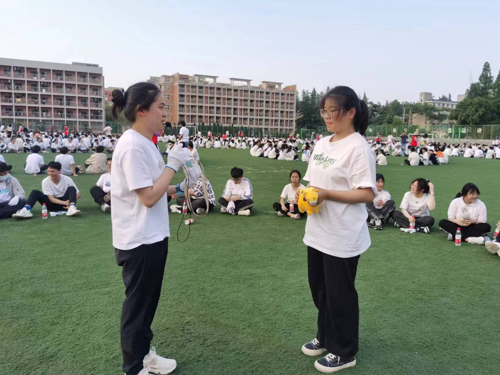 活動最后一個環(huán)節(jié)——“娃”塞,朋友!拿到玩偶的同學(xué)將其拋給組內(nèi)任何一位同學(xué),并大聲送出自己最真摯的祝福:“某某某,我祝你——”操場上回蕩著一聲聲祝福的話語,學(xué)生們在這個環(huán)節(jié)深刻感受到團(tuán)隊成員間的相互支持,贈與和收獲皆能帶來喜悅與感動。