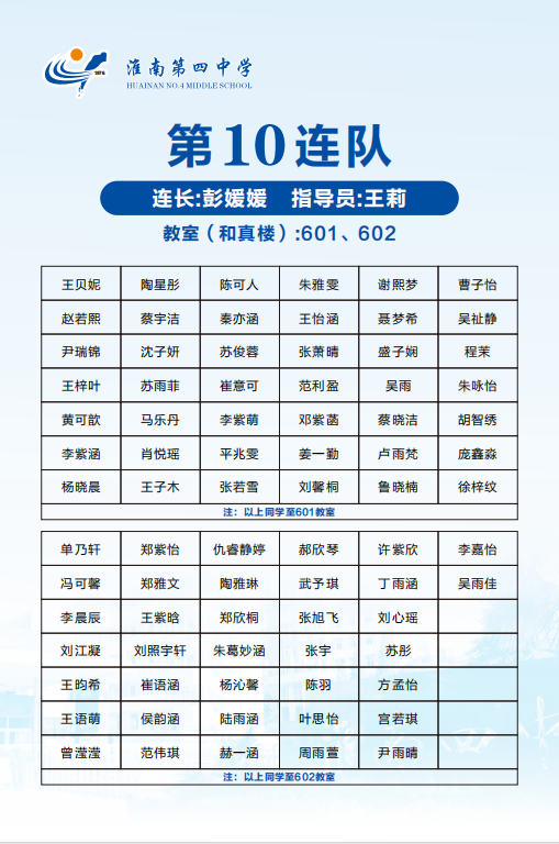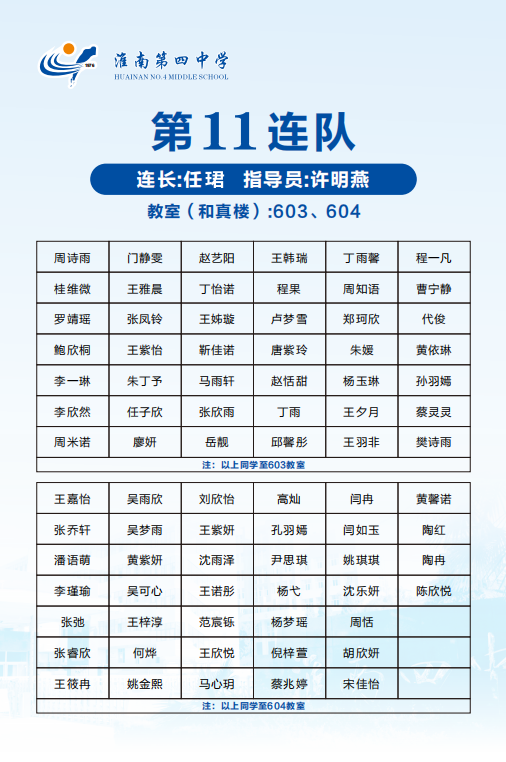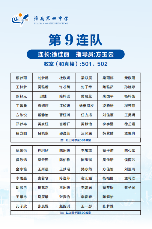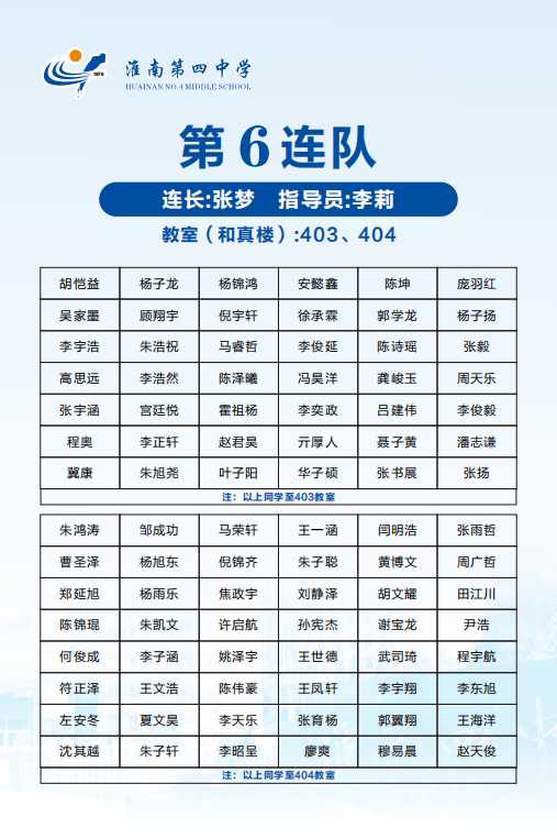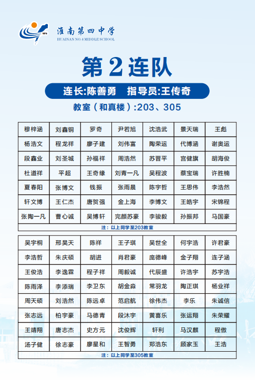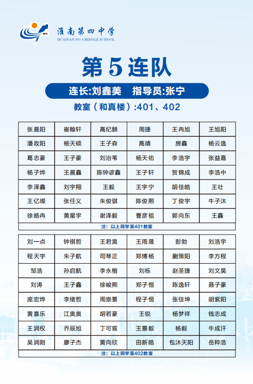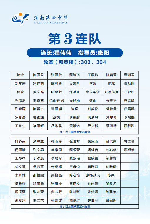 淮南四中2024新生軍訓(xùn)名單(分連隊(duì))