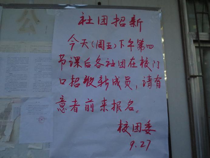 9月28日下午,在校團(tuán)委的精心組織下,我校各社團(tuán)招新拉開(kāi)帷幕。招新場(chǎng)面火爆,全校13個(gè)社團(tuán)共招納新成員1000多人。(校團(tuán)委)