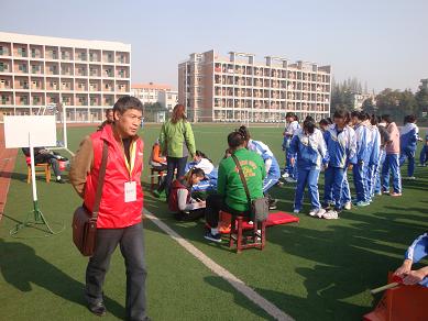 蒞臨我校檢查國(guó)家學(xué)生體質(zhì)健康標(biāo)準(zhǔn)測(cè)試工作,本次檢查主要檢查學(xué)生每天鍛煉一小時(shí)和國(guó)家學(xué)生體質(zhì)健康標(biāo)準(zhǔn)測(cè)試二個(gè)項(xiàng)目,采取查看資料、聽取匯報(bào)和現(xiàn)場(chǎng)檢測(cè)等形式進(jìn)行,專家組采抽取了100名學(xué)生進(jìn)行了現(xiàn)場(chǎng)9個(gè)項(xiàng)目的檢測(cè)。在政教處等部門和全體體育老師的共同努力下,檢查測(cè)試工作取得了圓滿成功。期間,市教育局孫奇志副局長(zhǎng)來校進(jìn)行了現(xiàn)場(chǎng)指導(dǎo)。(政教處)