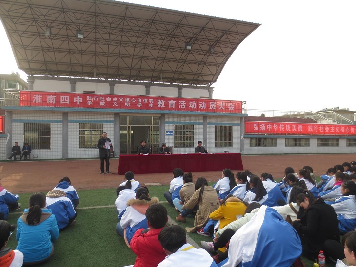 動員大會依次進(jìn)行了八項議程:校政教處徐坤偉主任首先對社會主義核心價值觀進(jìn)行了解讀,臧德煜副校長宣讀了淮南四中首屆“好男生、好女生”評選表彰決定,隨后對淮南四中首屆“好男生、好女生” 進(jìn)行了表彰,好男生代表高一( 13 )夏天一、好女生代表高一( 20 )程金金先后發(fā)言,校政教處副主任、團(tuán)委書記李永興向同學(xué)們發(fā)出踐行社會主要核心價值觀的倡議,陳紅日副校長結(jié)合學(xué)生九大不文明行為發(fā)表了講話,謝竹苗校長發(fā)表了熱情洋溢的總結(jié)講話,最后,高一級部、高二級部分別進(jìn)行了集體宣誓。
