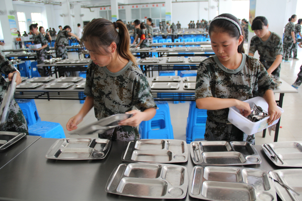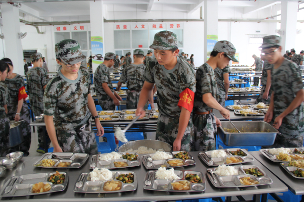 中午,部分同學(xué)們變身食堂工作人員,為其他同學(xué)服務(wù)。有的同學(xué)負(fù)責(zé)擺餐盤,有的負(fù)責(zé)打飯打菜,有的負(fù)責(zé)盛湯。 參與到其中的同學(xué)們認(rèn)真負(fù)責(zé),為大家提前準(zhǔn)備好可口足量的飯菜與綠豆湯,確保大家都能吃得飽,吃得好,有更大的干 勁投入到下午的訓(xùn)練中。