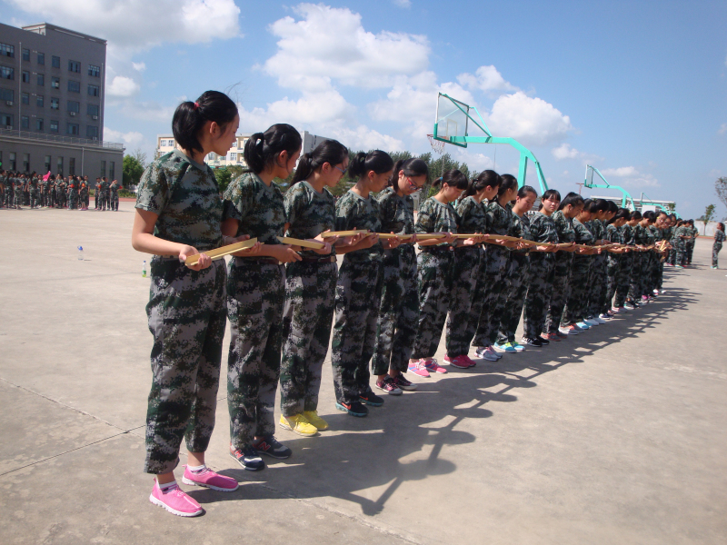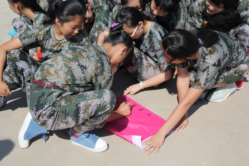 軍訓(xùn)第四天,基地來了一批大學(xué)生教官,專程趕來為同學(xué)們做心理團(tuán)體輔導(dǎo)的拓展訓(xùn)練。教官們首先給學(xué)生進(jìn)行分隊,選出隊長,并分配一系列的任務(wù),包括隊名、口號等等,旨在訓(xùn)練同學(xué)們的交流合作能力。之后,又安排了很多團(tuán)體活動讓每個同學(xué)都參與進(jìn)來,活動趣味性十足,而且要求同學(xué)們相互之間配合默契。活動中,大家體現(xiàn)出了極高的團(tuán)體榮譽感,同時,提高了自己的合作能力、溝通交流能力,還能夠換位思考,站在別人的角度想問題。