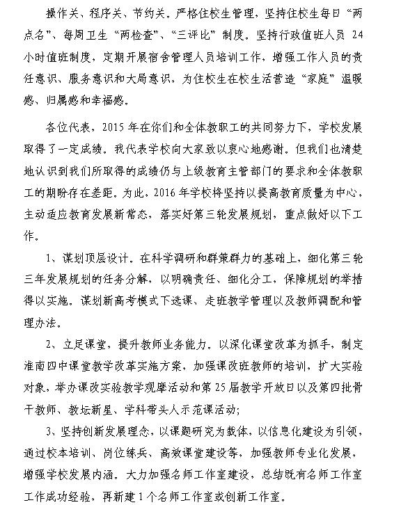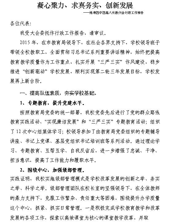 淮南四中四屆八次教代會(huì)行政工作報(bào)告
