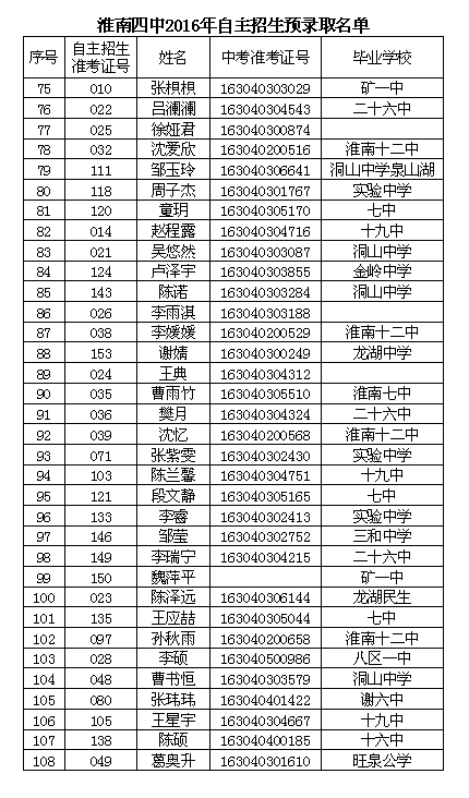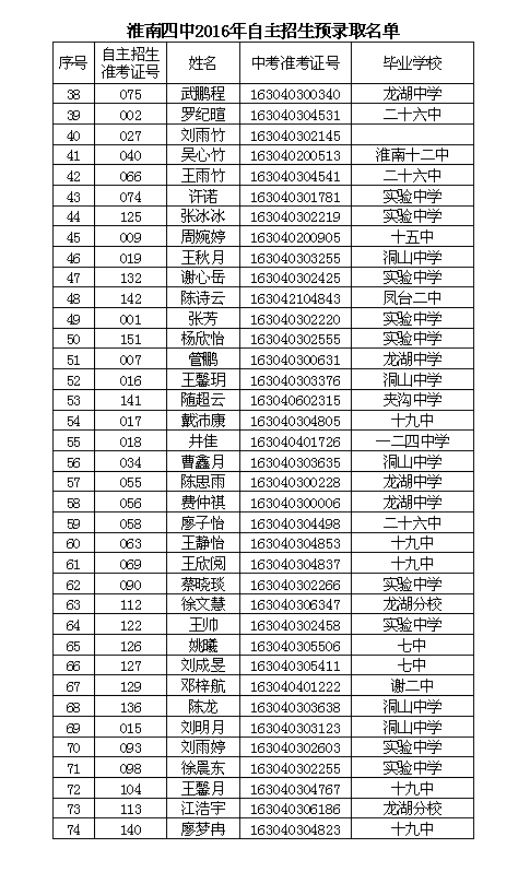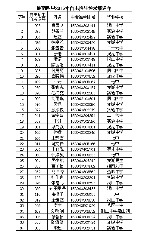 根據(jù)市教育局 2016 年中小學招生文件精神,我校決定招收美術特長生一個班,根據(jù)實際招生人數(shù)與預錄取人數(shù) 1 : 2 的原則,以下為被我校預錄取的入圍學生公示名單: