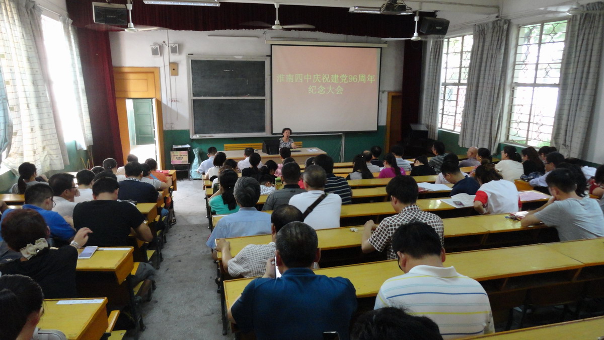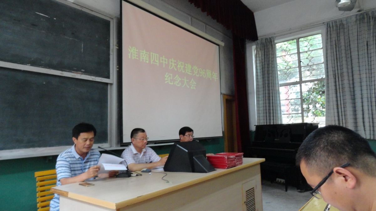 2017 年 6 月 30 日 下午,淮南四中黨委在階梯教室舉行“慶祝建黨 96 周年紀(jì)念大會”。會議由學(xué)校黨委委員、副校長陳紅日主持。大會首先觀看黨員警示教育片《永遠(yuǎn)在路上》,使全體參會黨員深受震撼。其次,由學(xué)校黨委委員、副校長臧德煜宣讀了淮南四中黨委《關(guān)于表彰 2016-2017 年度優(yōu)秀共產(chǎn)黨員的決定》和《關(guān)于授予高一數(shù)學(xué)備課組“黨員示范崗”的決定》,并由校領(lǐng)導(dǎo)向獲得優(yōu)秀的同志頒發(fā)榮譽(yù)證書,與會全體黨員用熱烈的掌聲向他們表示祝賀。再次,三支部部書記陳蘭霞副校長以回顧黨的革命和建設(shè)路程為核心,為大家上了一堂精彩的黨課。最后,學(xué)校黨委書記、校長謝竹苗以紀(jì)念大會為契機(jī),向全體黨員發(fā)出號召,號召大家積極行動(dòng),提高認(rèn)識,認(rèn)真學(xué)習(xí)領(lǐng)會《關(guān)于深入學(xué)習(xí)貫徹習(xí)近平總書記系列重要講話精神若干規(guī)定》和上級黨委的文件精神,用實(shí)際行動(dòng)踐行“兩學(xué)一做”學(xué)習(xí)教育活動(dòng),奉獻(xiàn)四中、奉獻(xiàn)淮南教育事業(yè),向黨組織交一份滿意的答卷。
