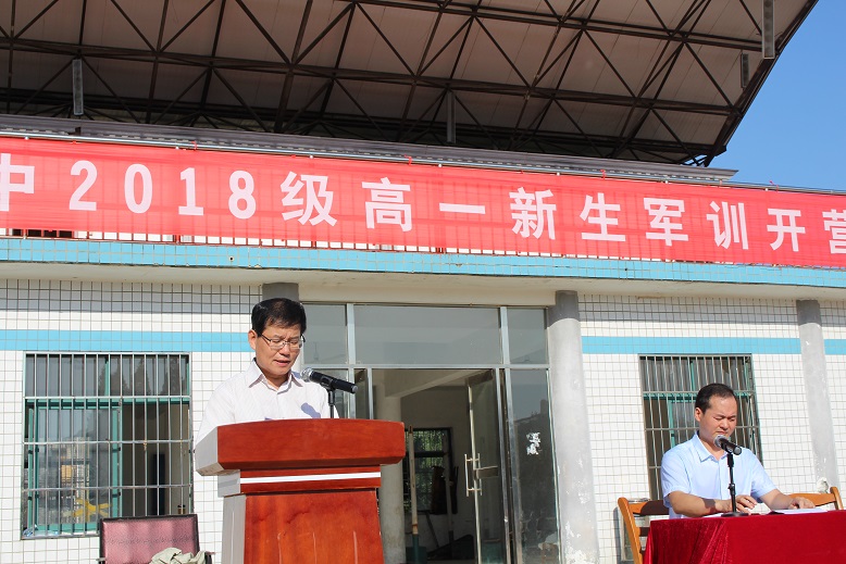 他要求全體新生要以飽滿的熱情和敢于吃苦的精神全身心地投入到軍訓(xùn)中,要服從命令,聽(tīng)從指揮,增強(qiáng)組織紀(jì)律性,要充分利用軍訓(xùn)的機(jī)會(huì),自覺(jué)磨煉,戰(zhàn)勝自我,為高中生活的奏響序曲!