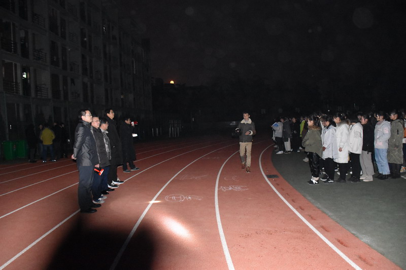 晚 18 點 20 分,總指揮謝校長發(fā)出開始信號,三幢宿舍樓的全體學生分別從各自的逃生通道迅速撤離,全體住宿生按照事先演練的方案,在老師的引導下從各宿舍樓依次疏散到集合地點(學校大操場)模擬避險。最后在操場的開曠地集合,各班及時清點人數(shù)并上報。