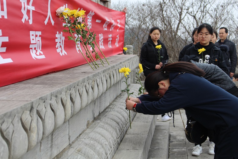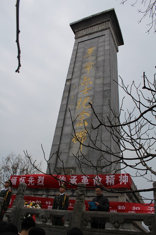 然后,學(xué)生代表向烈士獻(xiàn)詞,表達(dá)了對(duì)烈士沉痛的哀悼和深切的思念;謝竹苗校長(zhǎng)發(fā)表講話,勉勵(lì)大家繼承先烈革命傳統(tǒng), 堅(jiān)定的社會(huì)主義信念,樹(shù)立遠(yuǎn)大的政治理想,成為社會(huì)主義建設(shè)的有用之才;團(tuán)委書(shū)記、政教處副主任李永興帶領(lǐng)全體學(xué)生面向紀(jì)念碑莊嚴(yán)宣誓“立強(qiáng)國(guó)之志,長(zhǎng)報(bào)國(guó)之才,踐報(bào)國(guó)之行,為全面實(shí)現(xiàn)小康社會(huì),實(shí)現(xiàn)中華民族的偉大復(fù)興而加倍努力!”