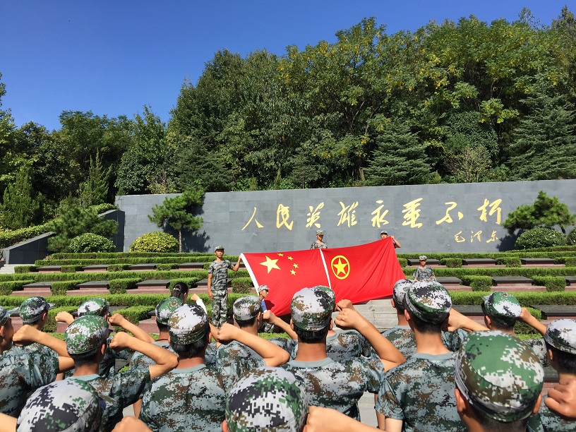 為 教育全體師生不忘初心,珍惜先輩革命成果,牢記 當(dāng)代青年擔(dān)當(dāng)?shù)? 民族復(fù)興使命 。 共和國 70華誕之際, 淮南四中高一級部全體同學(xué)在軍訓(xùn)教官和班主任的帶領(lǐng)下來到上窯新四軍紀(jì)念林 ,瞻仰 新四軍紀(jì)念館 。 在烈士墓前重溫入團(tuán)誓詞。