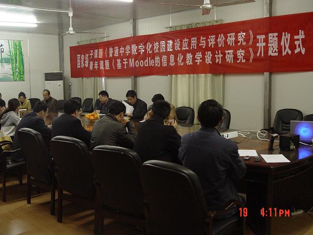 前來(lái)參加開(kāi)題儀式的有淮南市教育局分管教科研工作的王教祝副局長(zhǎng)和市教育局電教館王國(guó)明館長(zhǎng)、謝竹苗校長(zhǎng)、汪長(zhǎng)友助理以及兩項(xiàng)課題組全體成員共二十余人參加了開(kāi)題儀式。儀式由汪長(zhǎng)友助理主持,謝竹苗校長(zhǎng)首先致辭,祝賀我校兩項(xiàng)國(guó)家級(jí)課題正式開(kāi)題,感謝市教育局領(lǐng)導(dǎo)對(duì)我校教科研工作的大力支持,期望以課題研究為契機(jī),推動(dòng)我校數(shù)字化校園的建設(shè)和發(fā)展,全力支持課題組的課題研究工作,使學(xué)校的信息化教學(xué)和管理再上一個(gè)新的臺(tái)階。