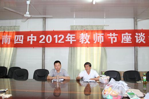 為迎接、慶祝第二十八個(gè)教師節(jié)的到來,我校召開了部分教師座談會(huì)。各位代表圍繞“轉(zhuǎn)變觀念,打造高效課堂,提高教學(xué)質(zhì)量”這一主題,積極建言獻(xiàn)策。最后,校黨委書記郭懷燕、校長(zhǎng)謝竹苗就學(xué)校發(fā)展、教師隊(duì)伍建設(shè)等提出要求,并祝全體教職工:節(jié)日快樂!身體健康!闔家幸福!